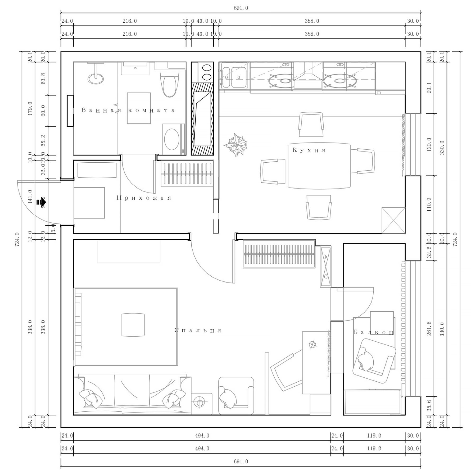 Виды работ: дизайн-проект, капсульный ремонт, авторский надзор, комплектация